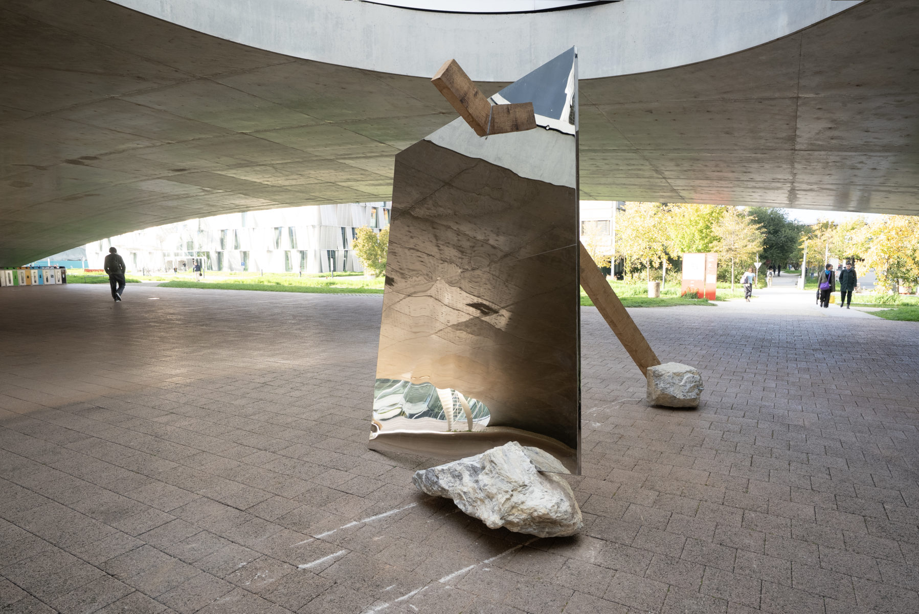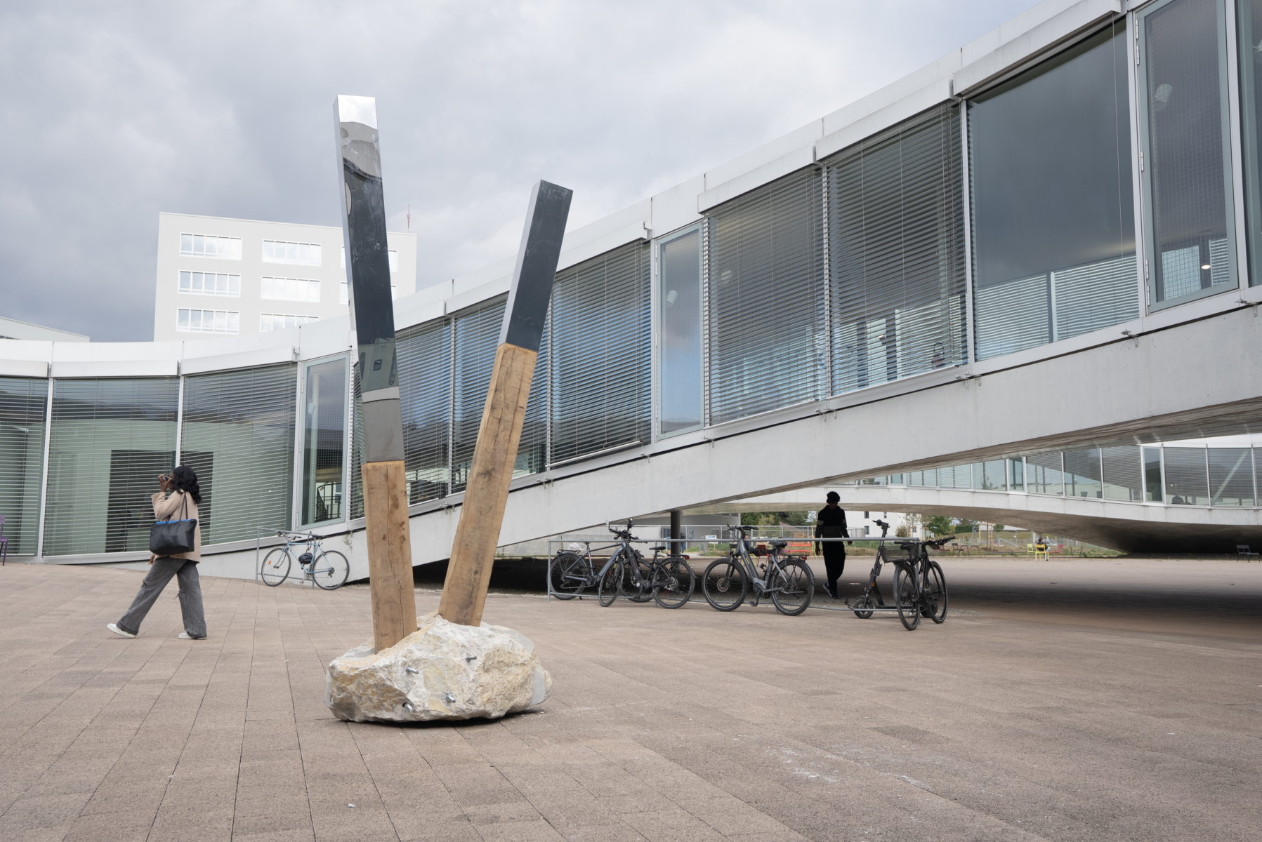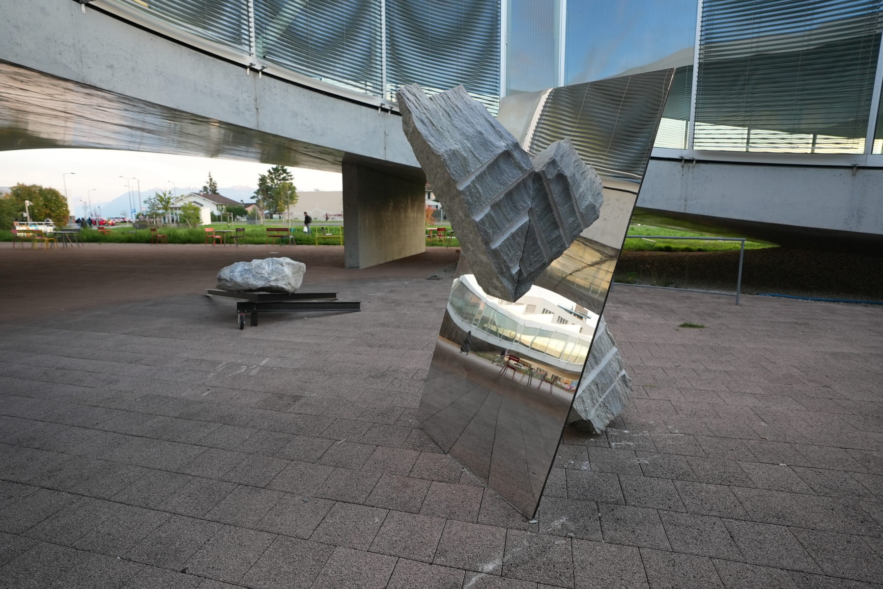These sculptures freely interpret the turbulent times we are living through—times that compel us to confront our own limits. Echoing today’s broader unrest, they reflect a sense of precariousness, unpredictability, and fragility. The polished steel surfaces directly engage with the Rolex Learning Center, staging it within the whirl of the world.